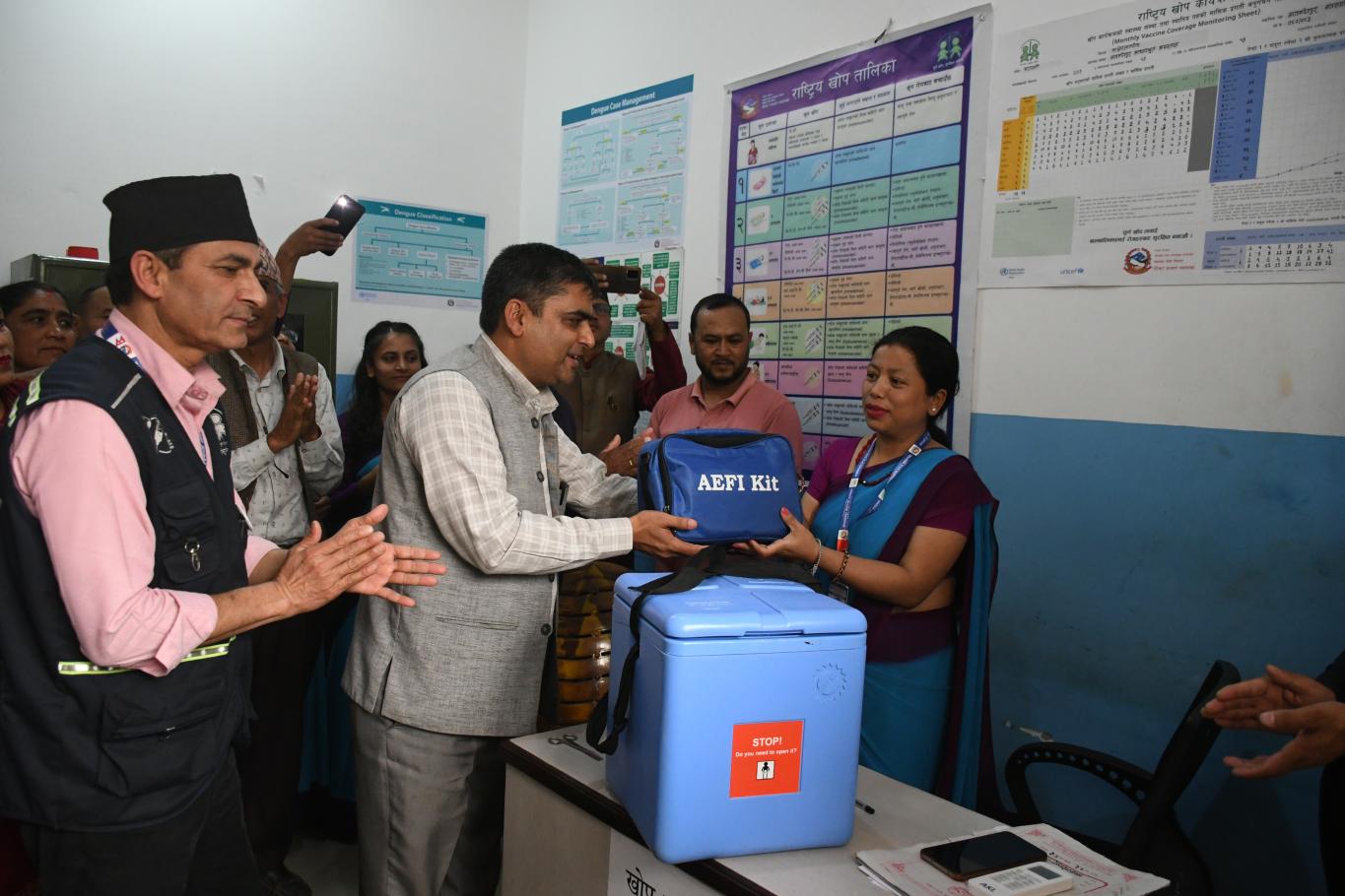 मण्डनदेउपुर आधारभूत अस्पतालमा वातानुकुलित खोप केन्द्र उद्‍घाटन कार्यक्रमका केही तस्विरहरु।