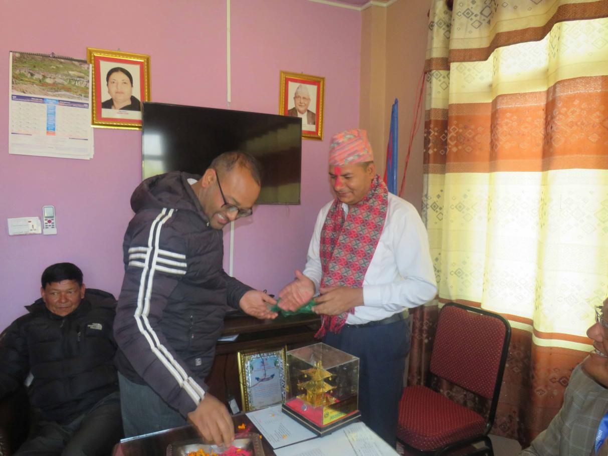 नगर प्रमुख श्री टोक बहादुर वाइवा ज्यूको अध्यक्षतामा मिति २०७७/०१/१४ गते स्वास्थ्य समितिको बैठक बसि कोभिड-19 भाइरससंग सम्बन्धित रहि स्वास्थ्य संस्थाहरुले हालसम्म गरेका कार्यहरुको बारे समिक्षा तथा विभिन्न व्यक्ति, संघ संस्था र दातृ निकायहरु मार्फत प्राप्त भएका Infrared Thermometer र PPE सेट न.पा. अन्तरगतका स्वास्थ्य संस्थाहरु र सुरक्षा चौंकीहरुलाई वितरण गरिएको कार्यक्रमका केहि झलकहरु।