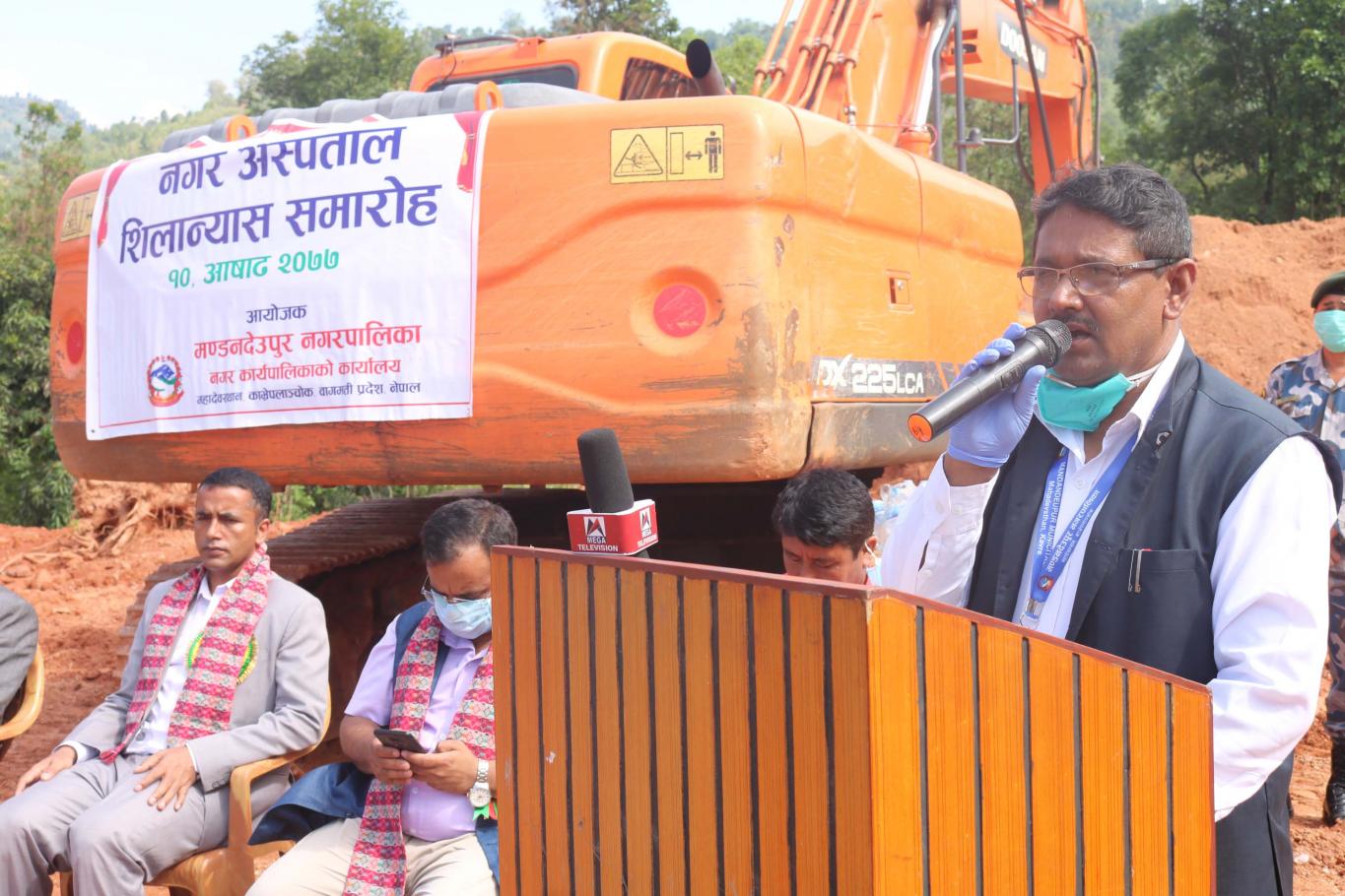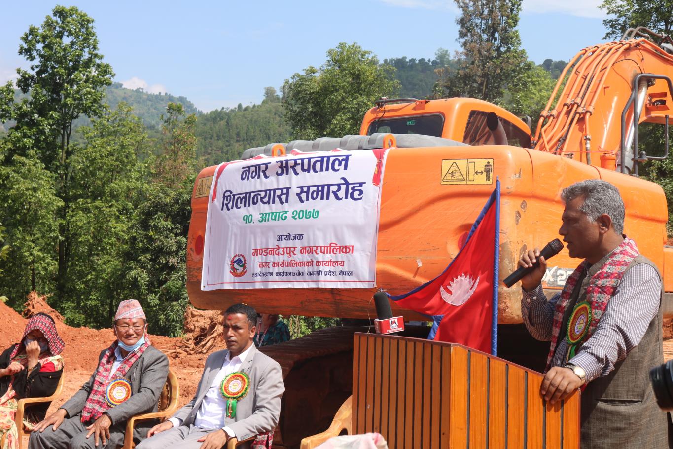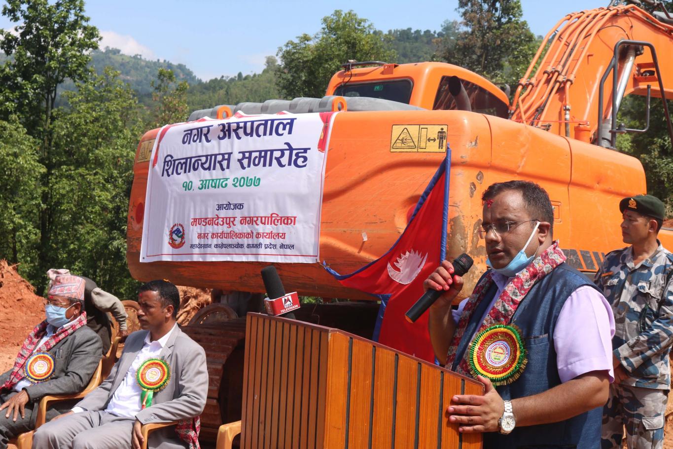 आज मिति २०७७/०३/१० गते बागमती प्रदेशका सामाजिक विकास मन्त्री माननीय युवराज दुलालको प्रमुख आतिथ्यता, प्रदेश सभा सदस्य माननीय लक्ष्मण लम्साल एवं माननीय बसुन्धरा हुमागाईंको विशेष आतिथ्यतामा नगरस्तरीय अस्पताल निर्माणको शिलान्यास कार्यक्रम सम्पन्न भयो । नगरप्रमुख श्री टोक बहादुर वाईवाको अध्यक्षतामा सम्पन्न सो कार्यक्रममा नगर उपप्रमुख श्री निर्मला शाहीले स्वागत गर्नुभएको थियो भने प्रमुख प्रशासकीय अधिकृत श्री प्रणराज न्यौपानेले सञ्चालन गर्नु भएको थियो । सो कार्यक्रममा स्थानीय राजनीतिक दलका प्रतिनिधिहरु, जि.स.स.
