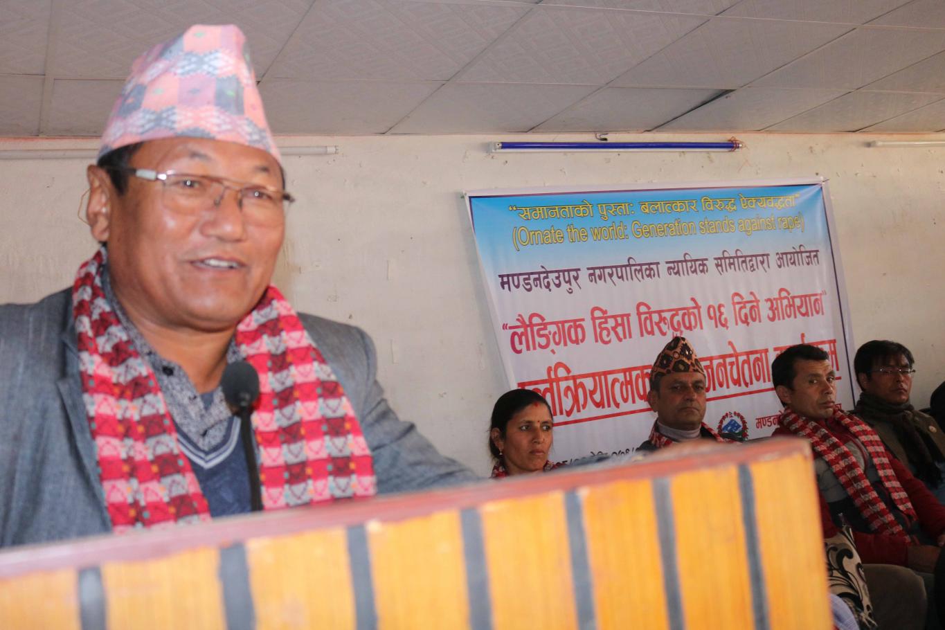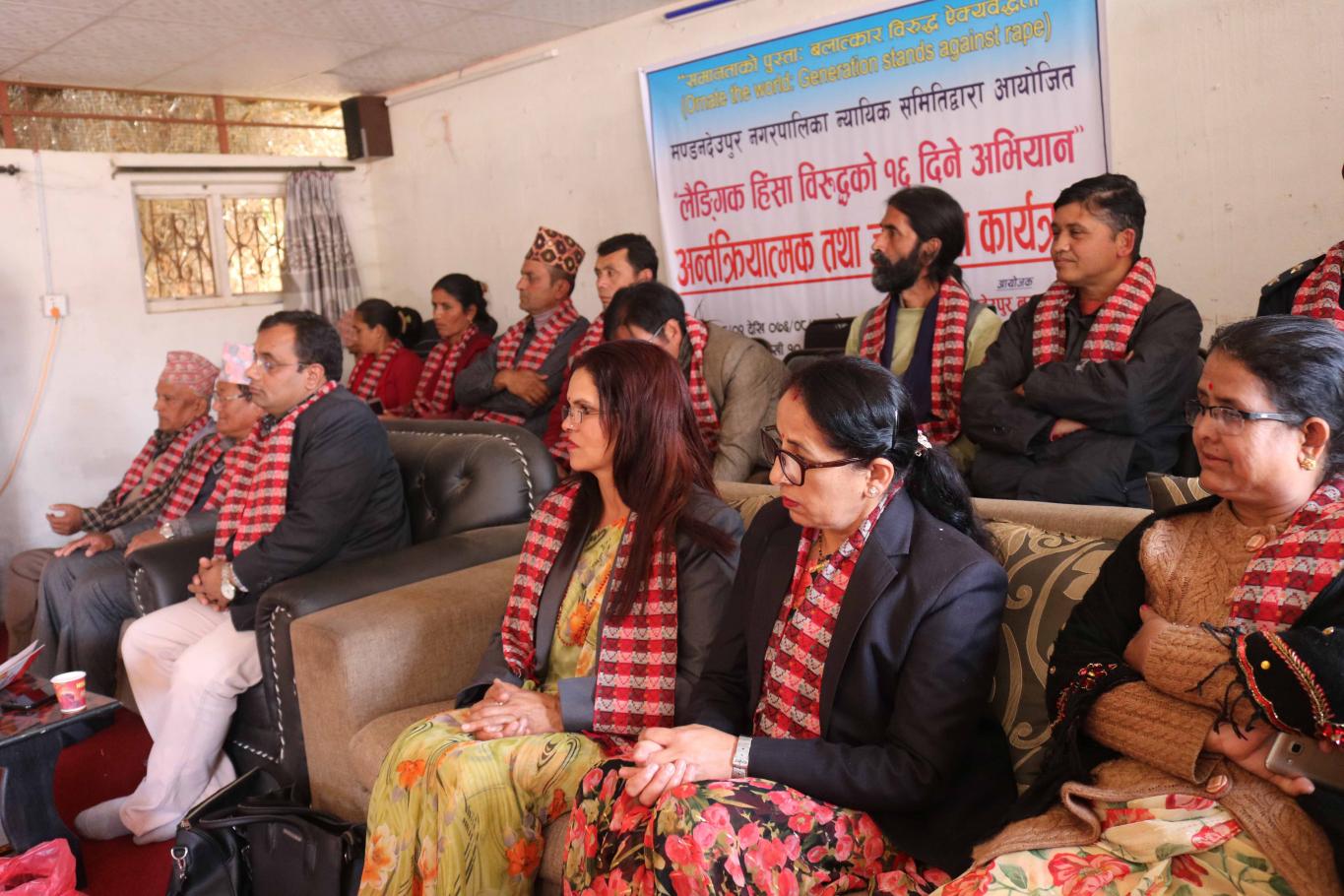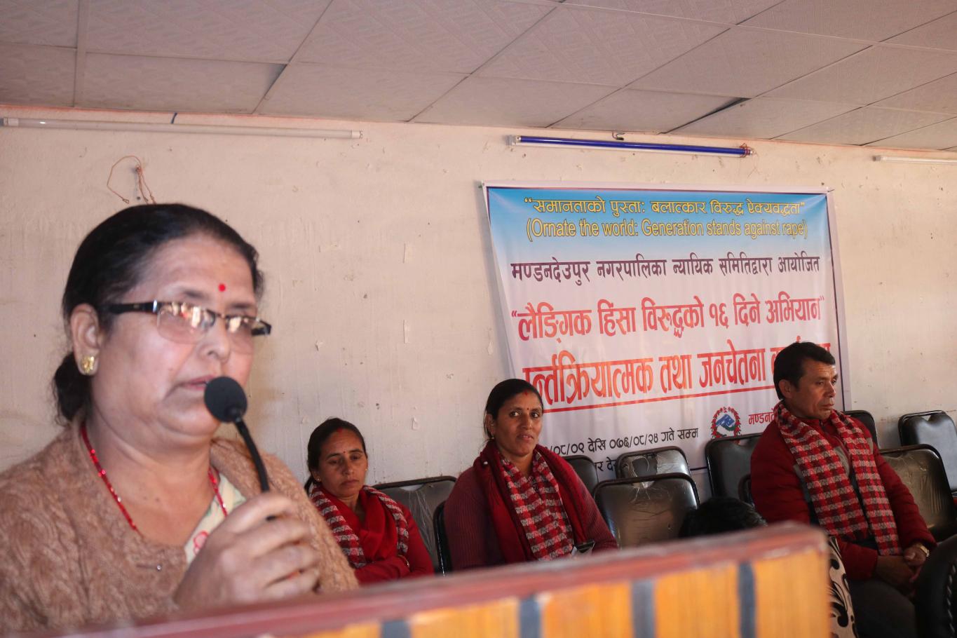 १११ औं अन्तराष्ट्रिय श्रमिक नारी दिवसको अवसरमा मण्डनदेउपुर नगरपालिका न्यायीक समितिको आयोजनामा संचालन गरिएको अन्तरक्रिया कार्यक्रम नगर-उपप्रमुख श्री निर्मला शाहीको अध्क्षता तथा नगर प्रमुख श्री टोक बहादुर वाईबाको प्रमुख आतिथ्यतामा सम्पन्न भएको थियो। उक्त कार्यक्रमा विभिन्न क्षेत्रमा आवद्द १५० भन्दा बढि महिलाहरुको उपस्थितिमा श्रमिक, सुकुम्वासी, हिंसा पिडित, जेष्ठ, अपाड्ड्गता तथा राजनितिक क्षेत्रका महिलाहरु गरि १२ जनालाई सम्मान गरियो। उक्त कार्यक्रमा केही झलकहरु।