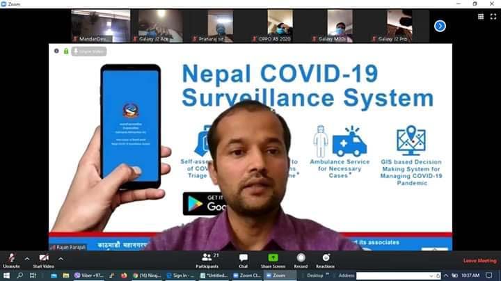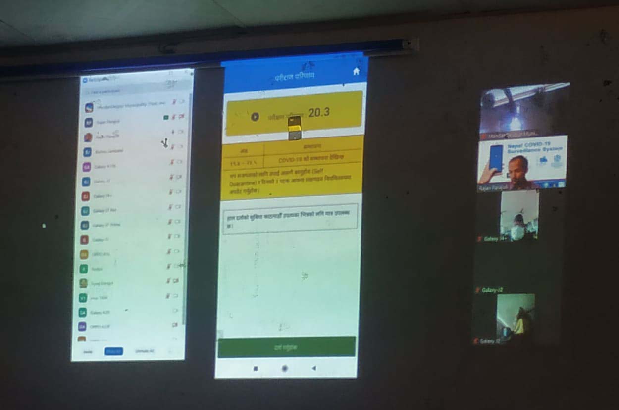 कोरोना भाइरस रोकथाम तथा नियन्त्रणका लागि तयार गरिएको Covid-19 Surveillance System को मोबाइल एप नगरपालिका भित्रका सबै नागरिकहरुको पहुँचमा पुर्याउने सन्दर्भमा आज मिति: २०७७/०१/०४ गते उक्त मोबाइल एप प्रयोग सम्बन्धी नगर प्रमुख, नगर उपप्रमुख, प्रमुख प्रसासकीय अधिकृत, वडाध्यक्षहरु, कार्यपालिका सदस्यहरु, न.पा. का कर्मचारीहरु र स्वास्थ्य चौकीका प्रमुखहरु सहभागी भई भिडियो कन्फेरेन्सबाट अभिमुखीकरण भयो।उक्त एप प्रयोग सम्बन्धमा नेपाल रिसर्च एण्ड एजुकेसन नेटवर्क बाट डा. राजन पराजुली, काठमाडौँ मोडेल अस्पतालका डा. उदय कोइराला, धुलिखेल अस्पतालका डा. राम बहादुर गुरुङ्ग, डा.