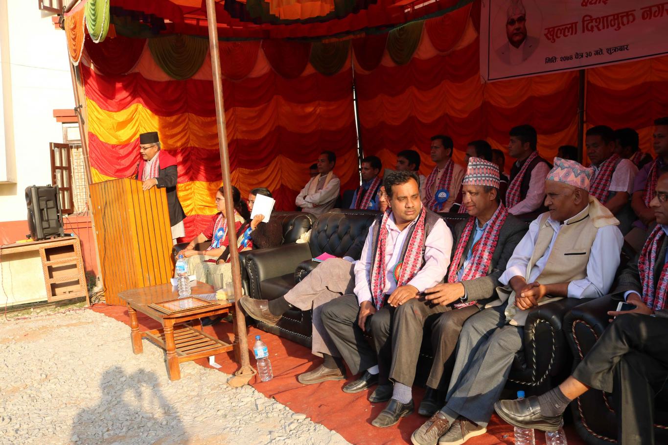 माननीय मन्त्री गोकुल प्रसाद बाँस्कोटा ज्यु द्बारा २०७४|१२|३० गते न.पा. को खुल्ला दिशामुक्त नगर (ODF) घोषणा कार्यक्रम